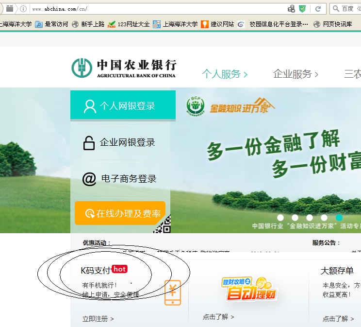 2.现场办理网银业务(K宝原价50元/个,现场办理免费);