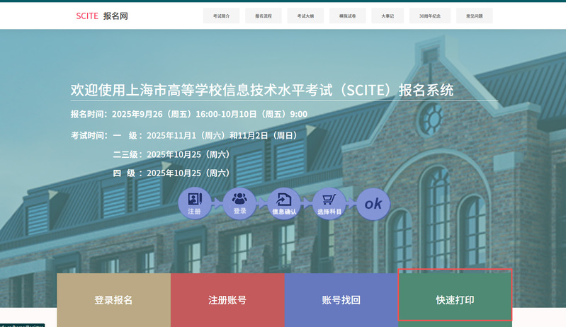 https://scite.shmeea.edu.cn/ 自行下载打印,如下图),具体时间及场次参考以上机房安排表。模拟考过程中如有问题,请向现场老师反映、咨询。