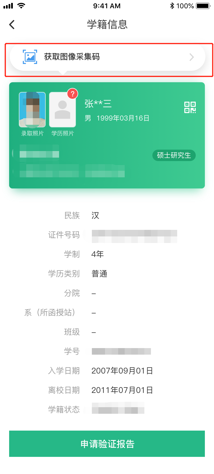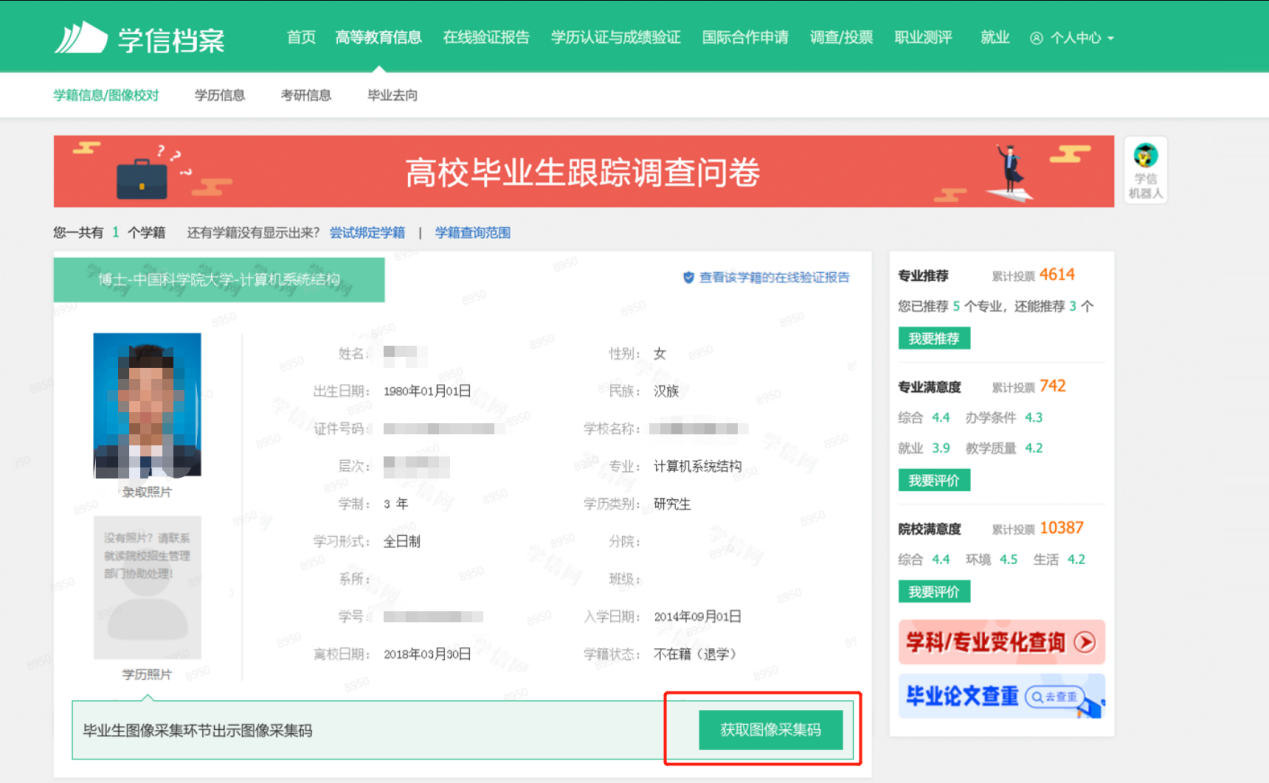 3.选择学籍,查看对应采集码